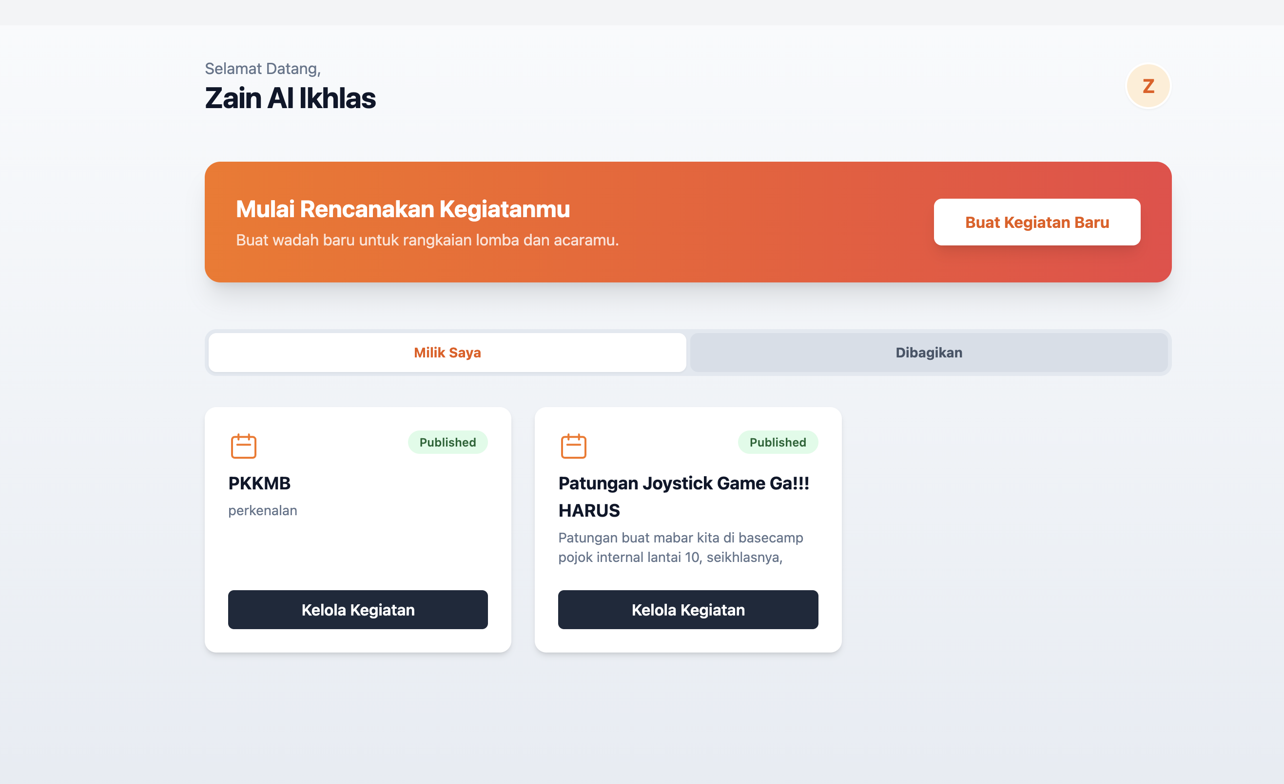 Pertama, panitia harus login dulu ke dashboard SATUWARGA. Di sini, kamu tinggal buat "Kegiatan Baru". Isi nama acaranya, tanggalnya, sampai deskripsi yang bikin warga semangat buat ikutan.
